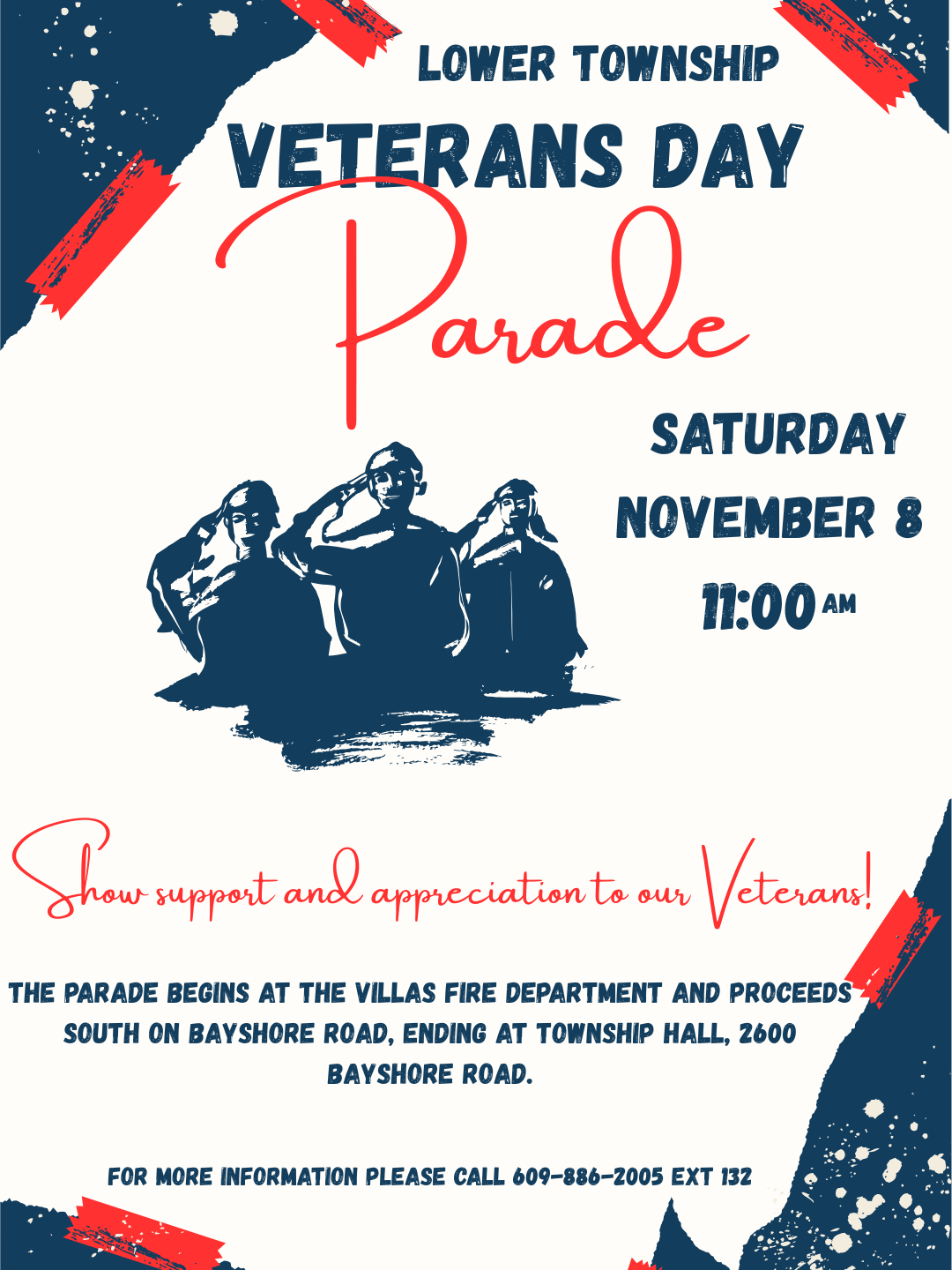 Parade begins at the Villas Fire Department at 11 am and will travel south on Bayshore Rd ending at Municipal Hall